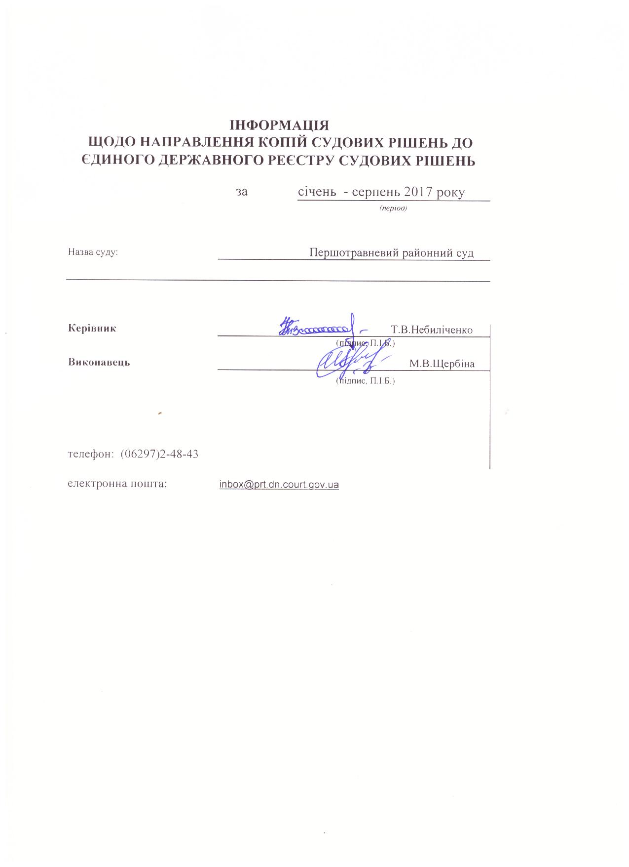 Інформація щодо направлення копій судових рішень до ЄДРСР